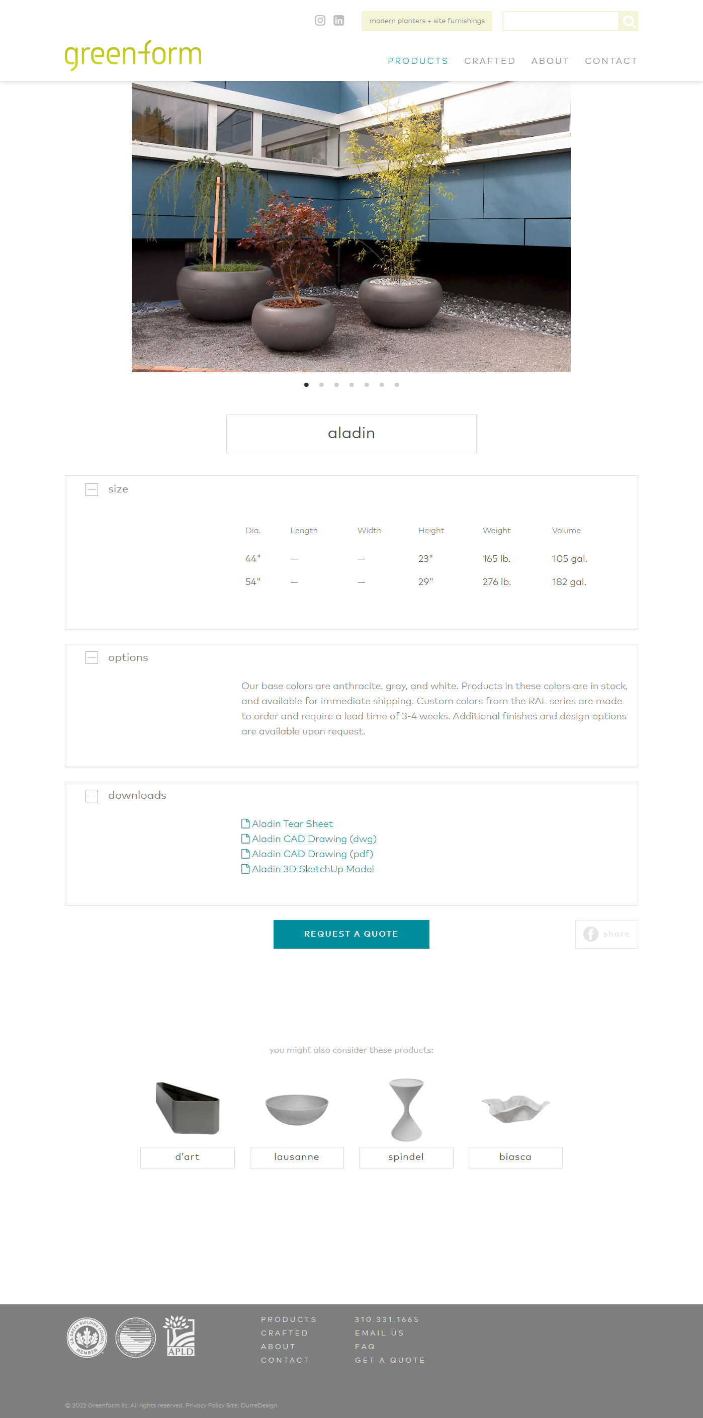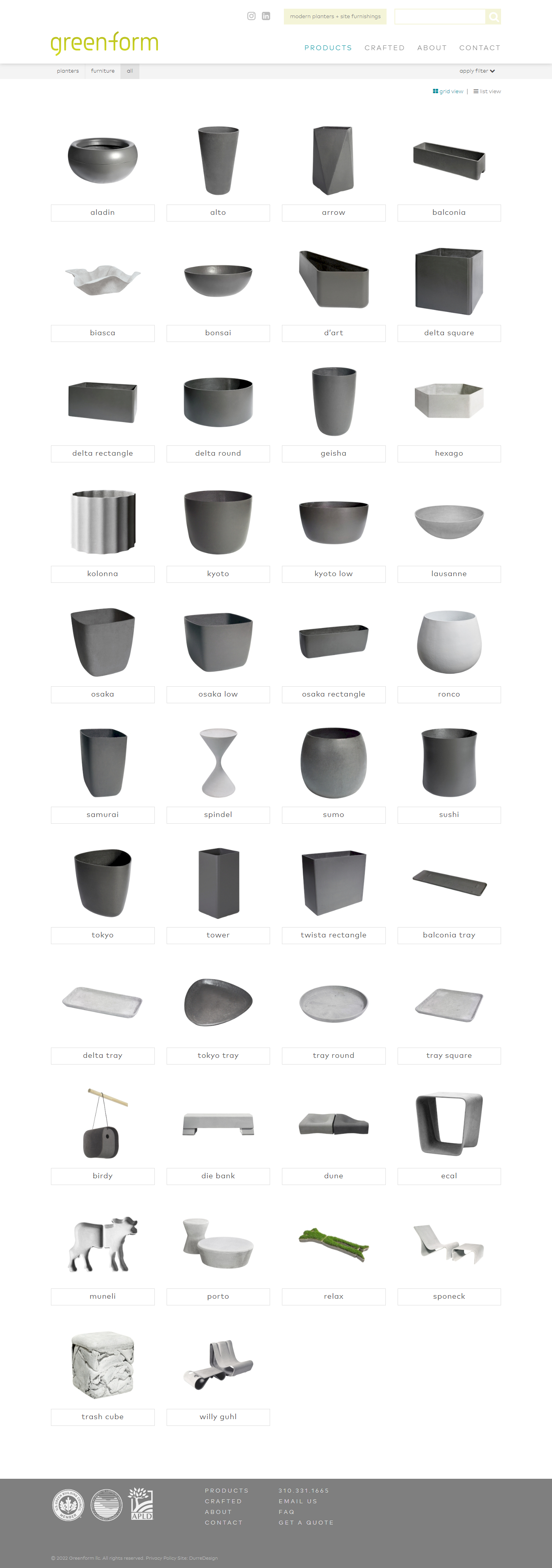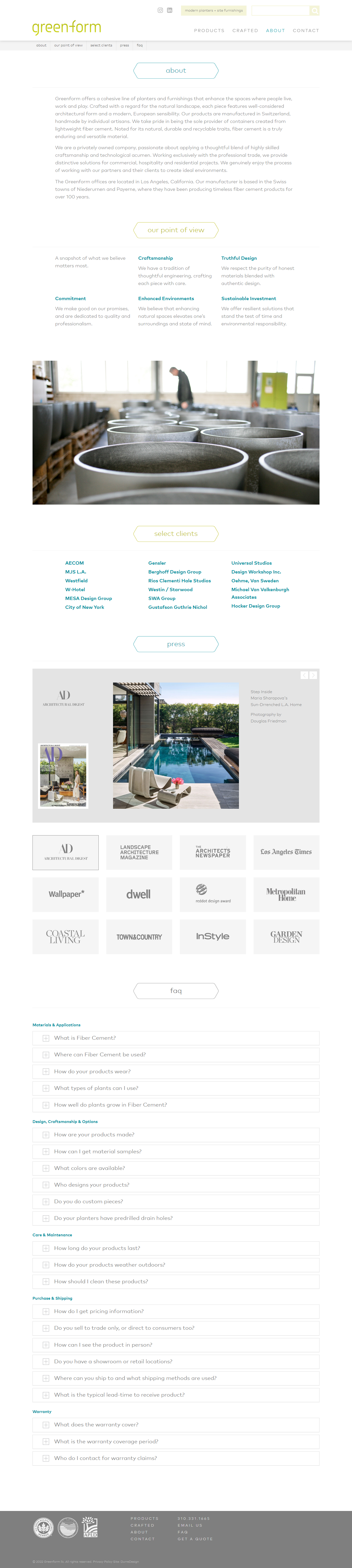 Greenform offers a cohesive line of planters and furnishings that enhance the spaces where people live, work and play. In 2015, I worked with Durre Design in developing their new website.