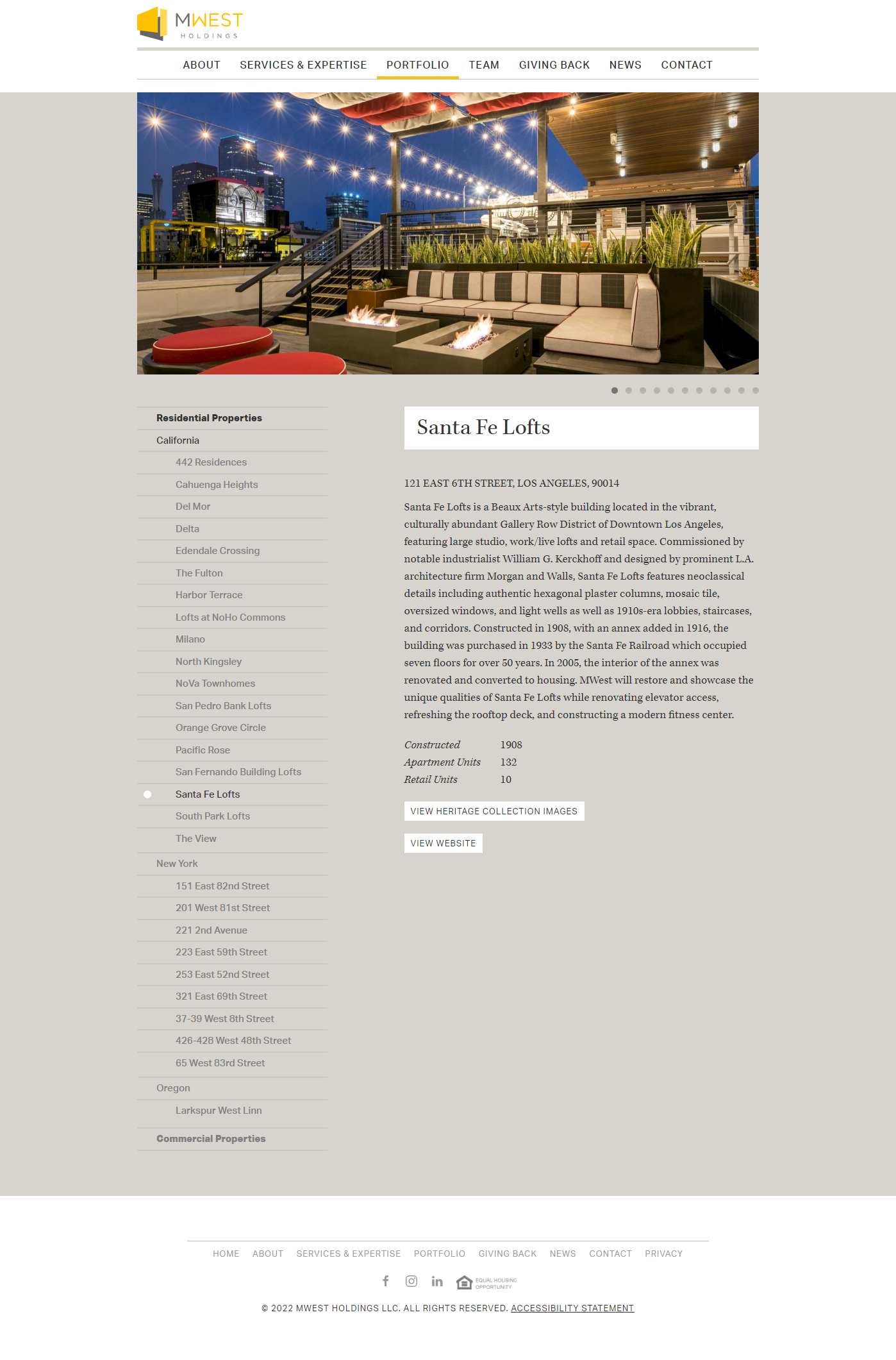 MWest Holdings is an experienced real estate investment company with over two million square feet of residential and commercial property across the United States. In 2015, I worked with Durre Design and redeveloped their corporate website.