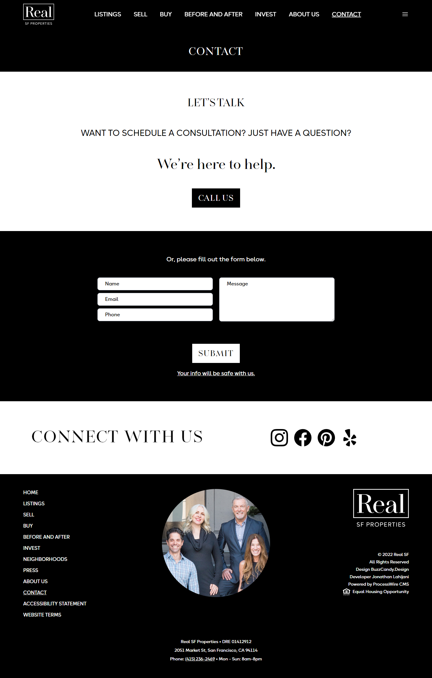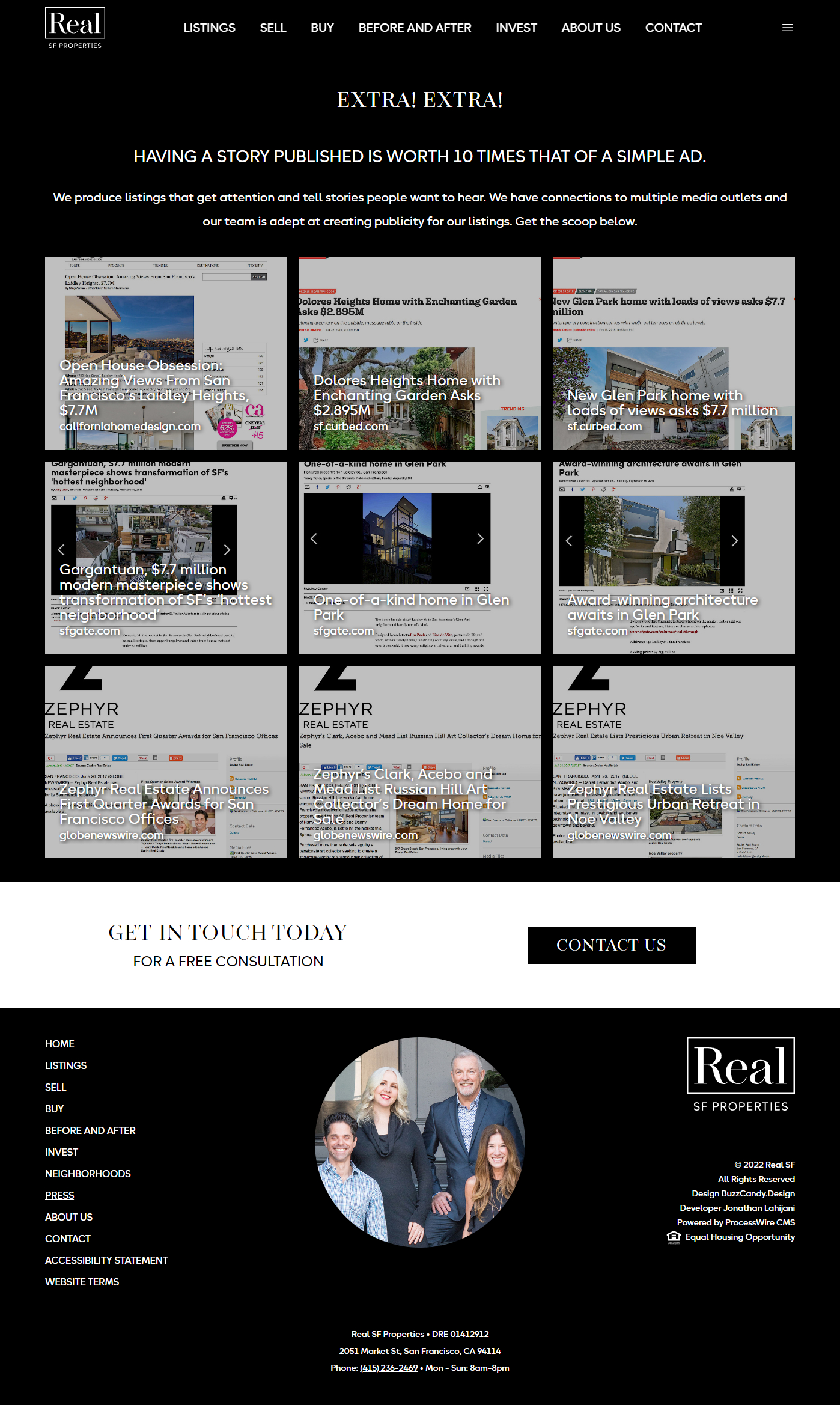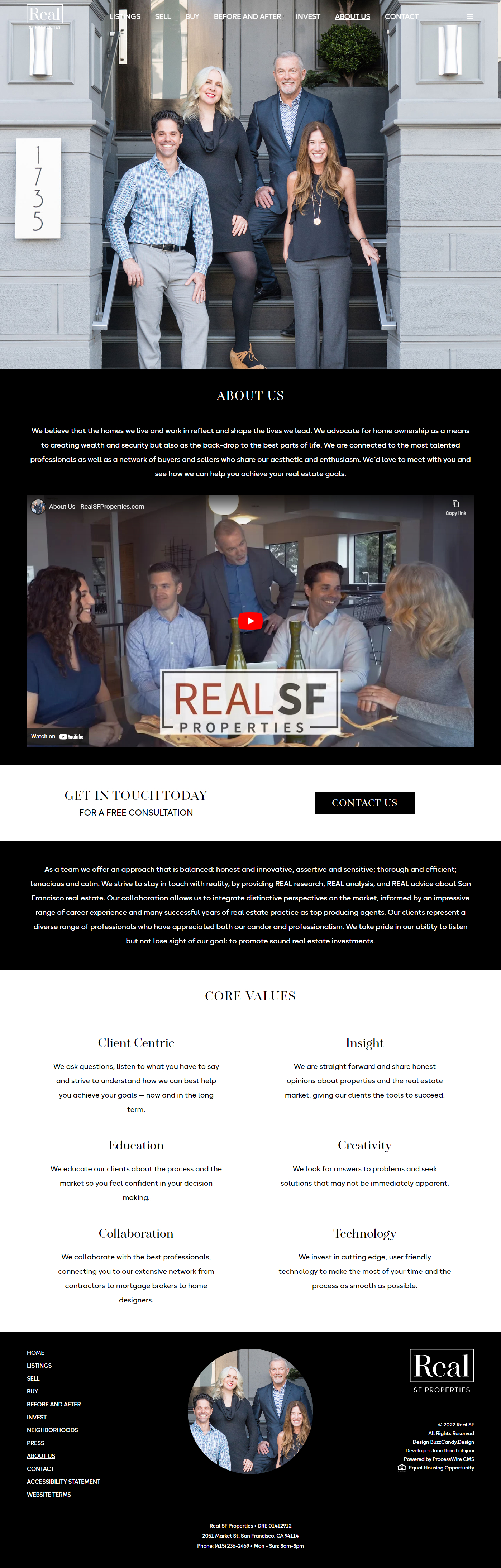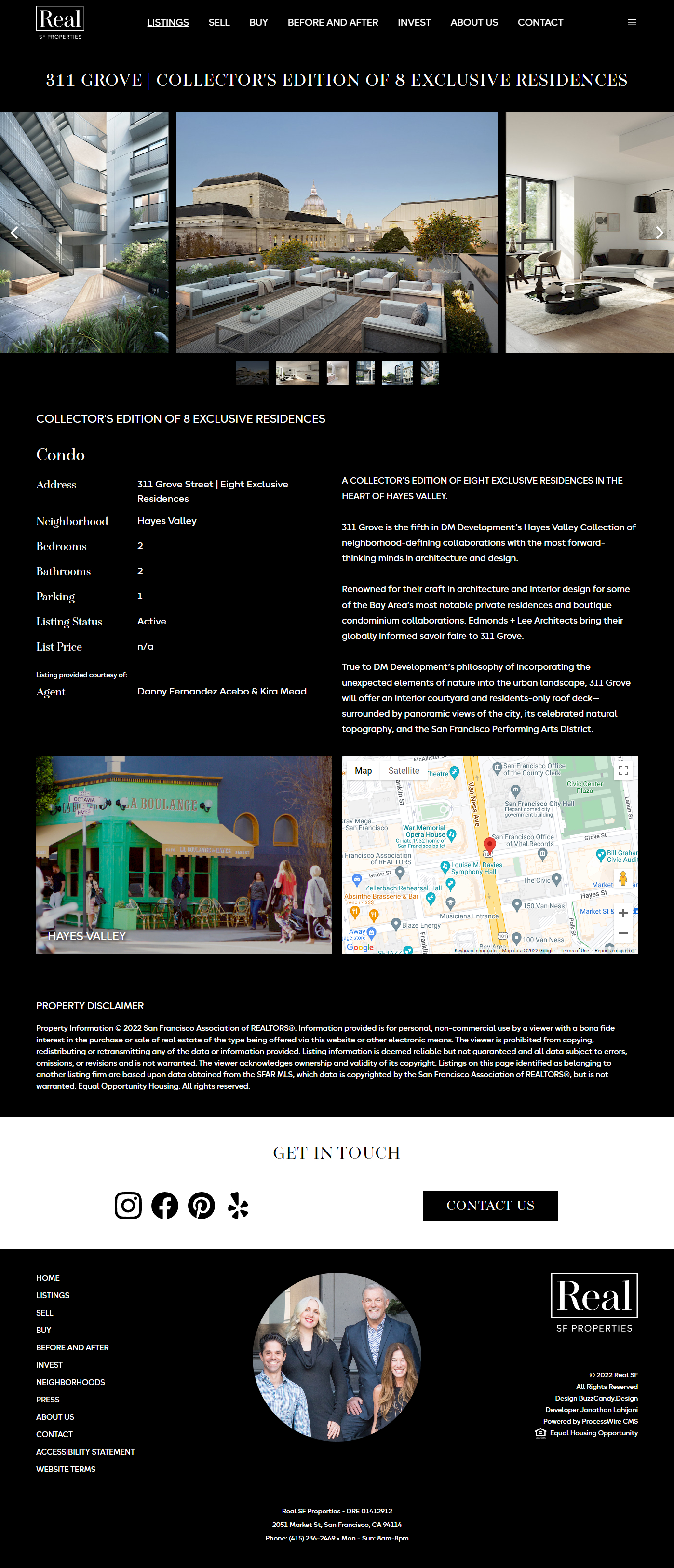 Real SF Properties is a residential real estate agency that represents buyers and sellers in San Francisco, California. As a client since 2014, the second iteration of their website, designed by BuzzCandy.Design, was launched in 2022.