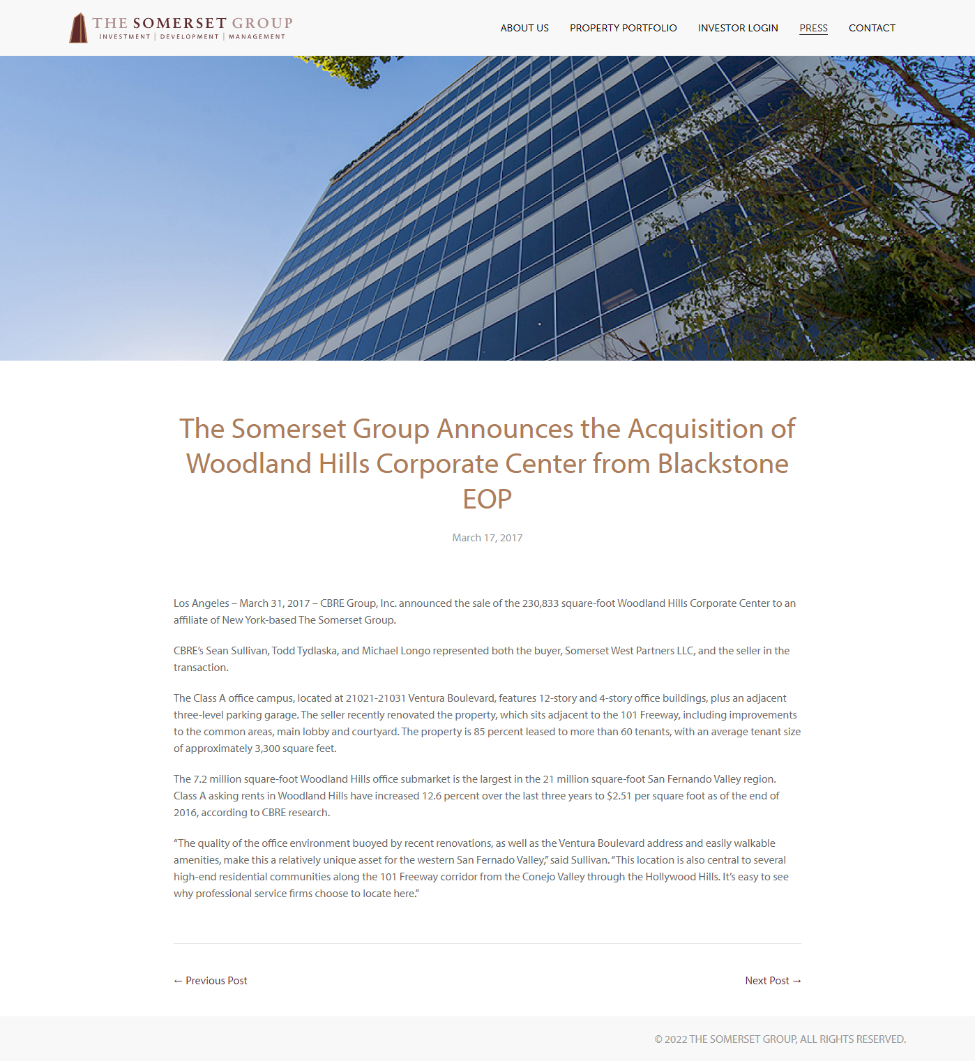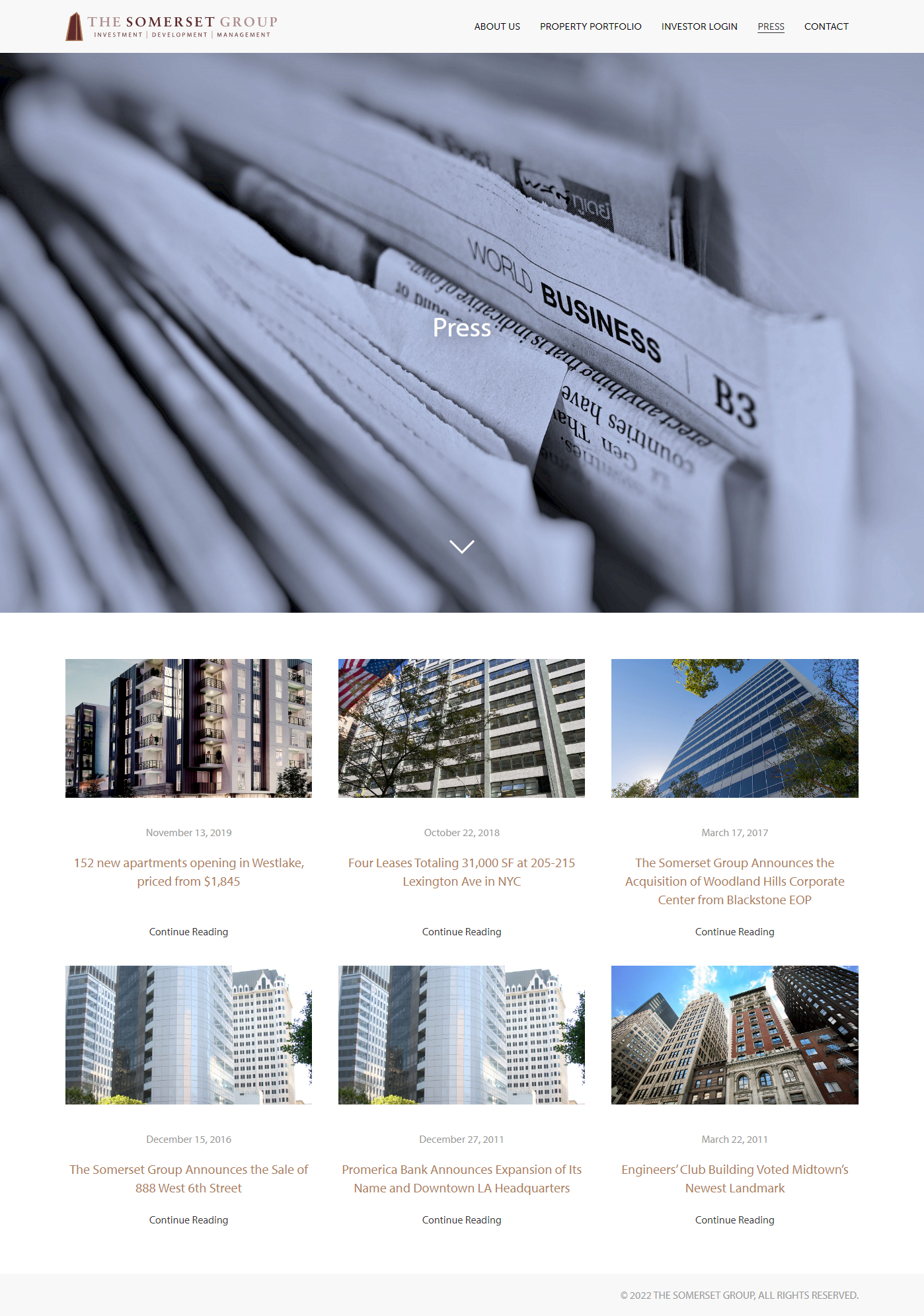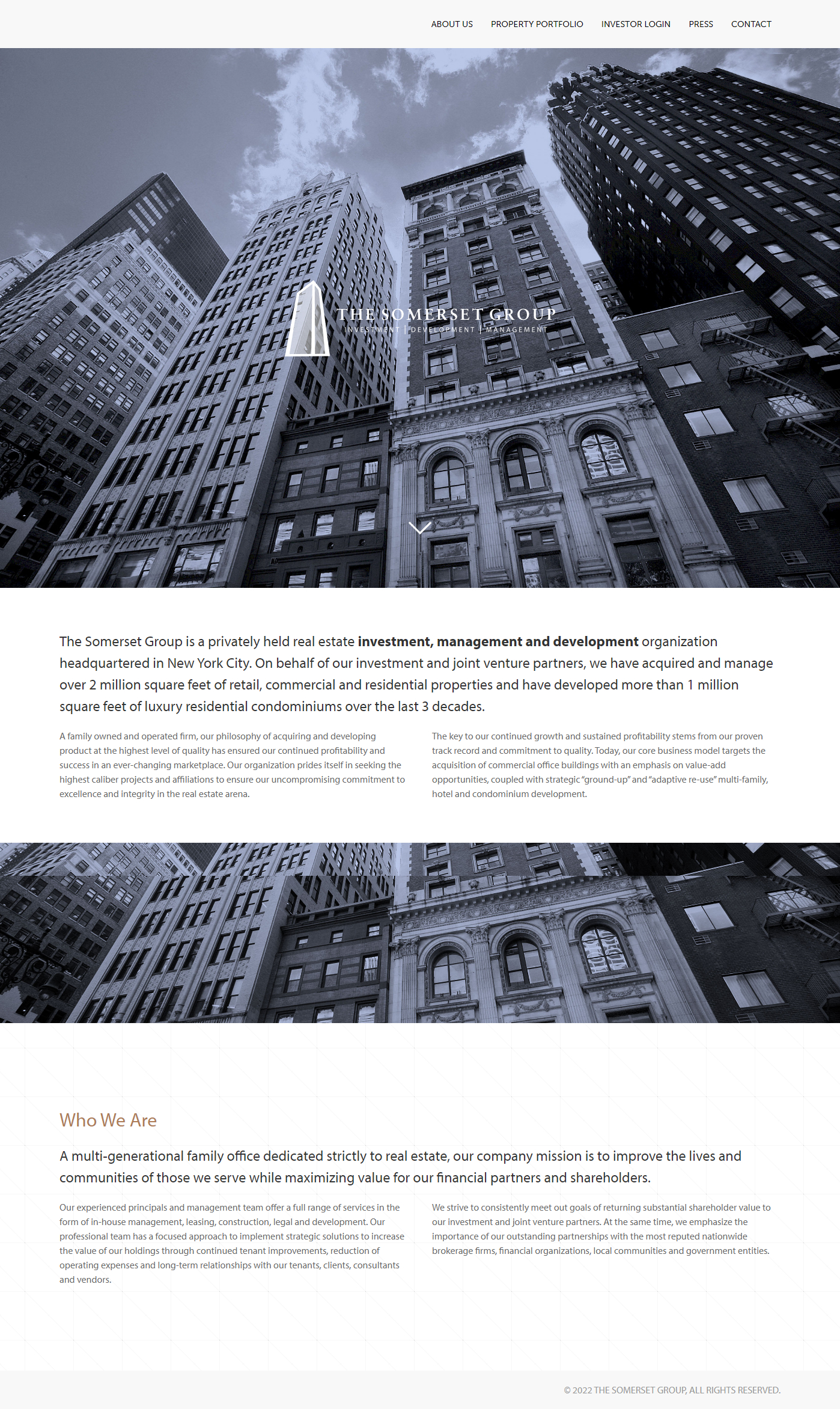 The Somerset Group is a privately held real estate investment firm headquartered in New York City. In 2018, I redeveloped their corporate website using ProcessWire and UIkit.