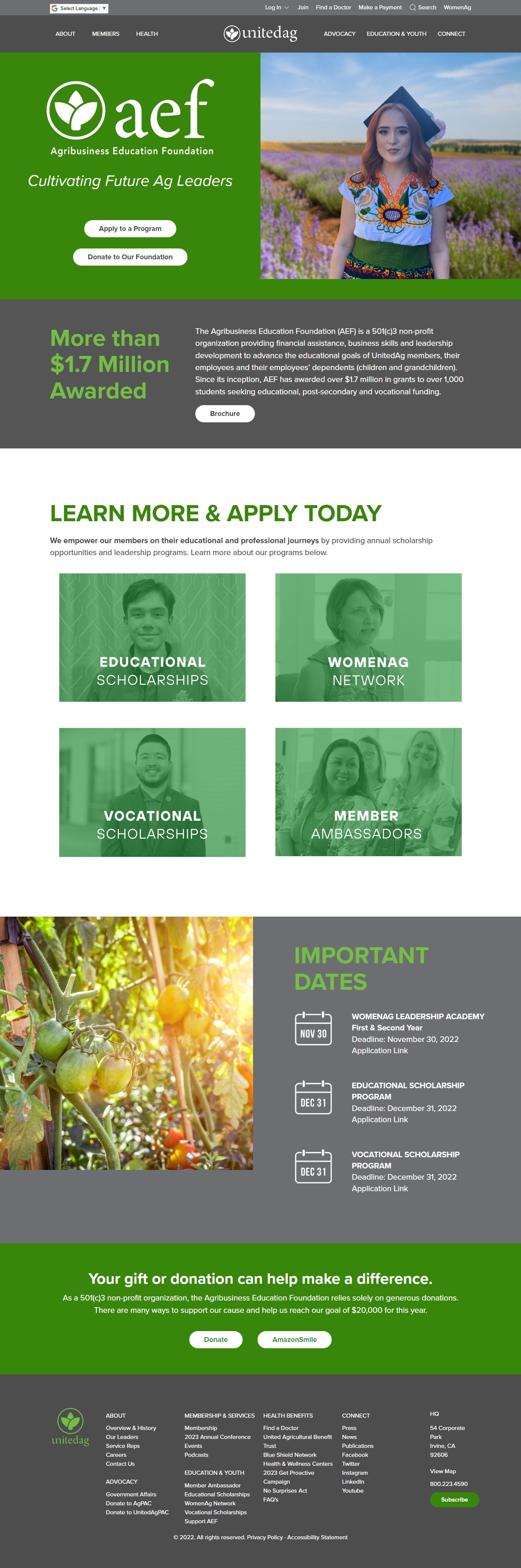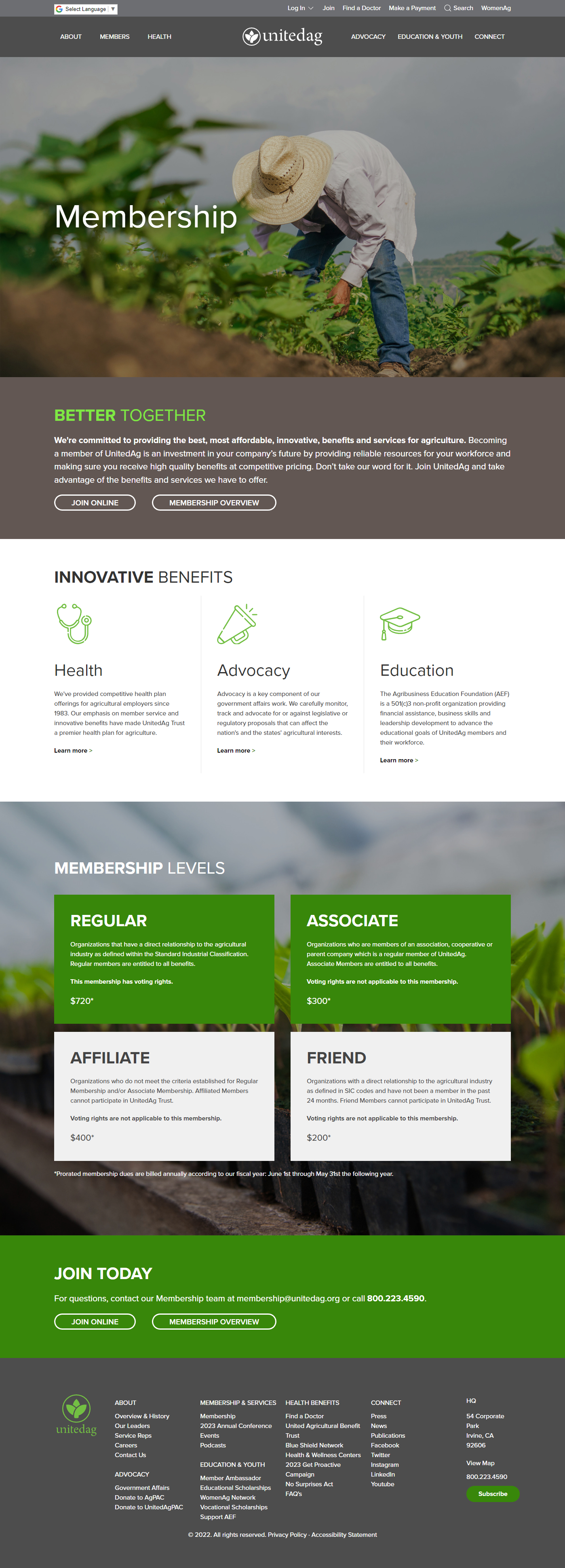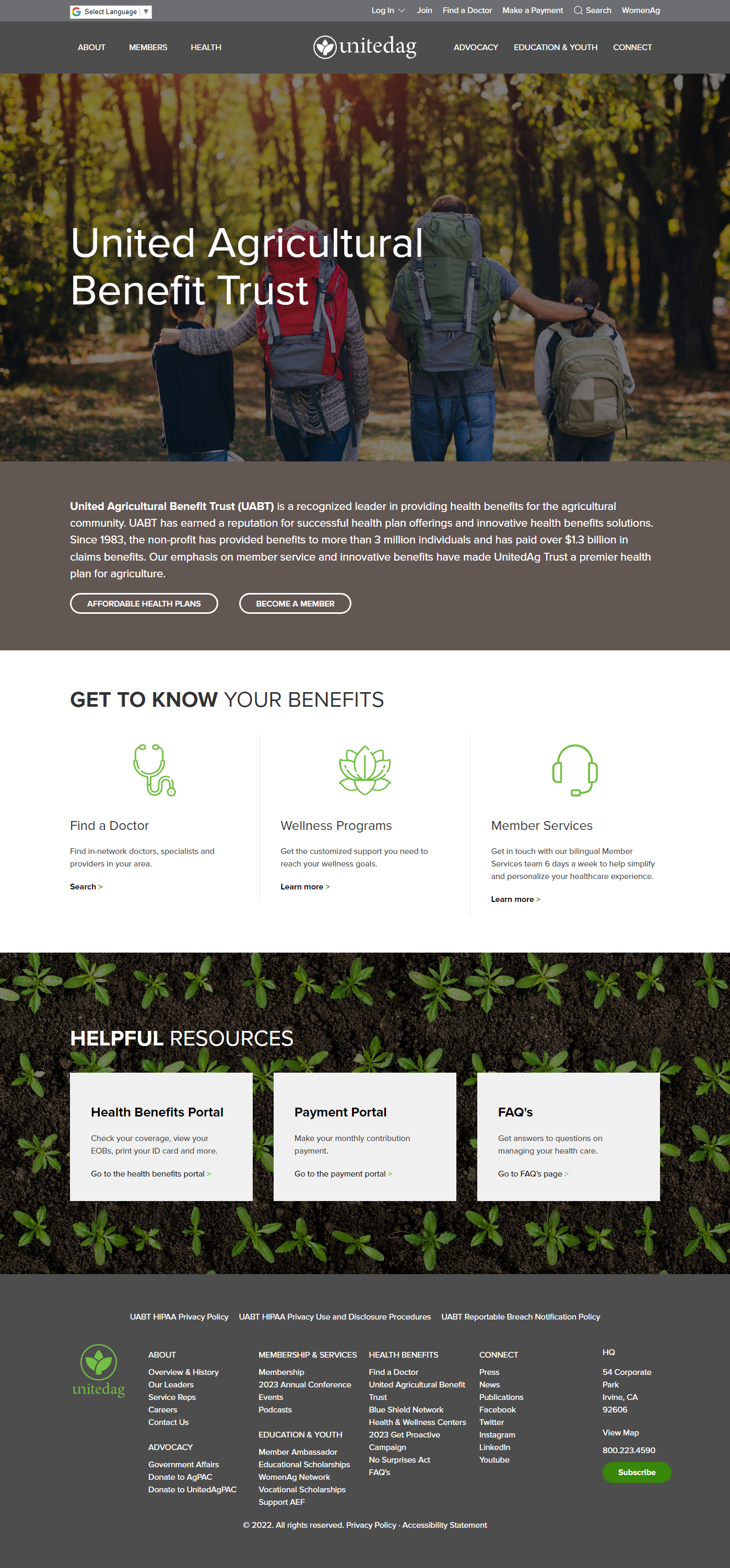 UnitedAg is an agricultural trade association dedicated to meeting its members’ employee benefit needs and represents over 1,000 agriculture affiliated member organizations. Since 2015, I've worked hand-in-hand with UAG marketing team on nearly all aspects of their website.