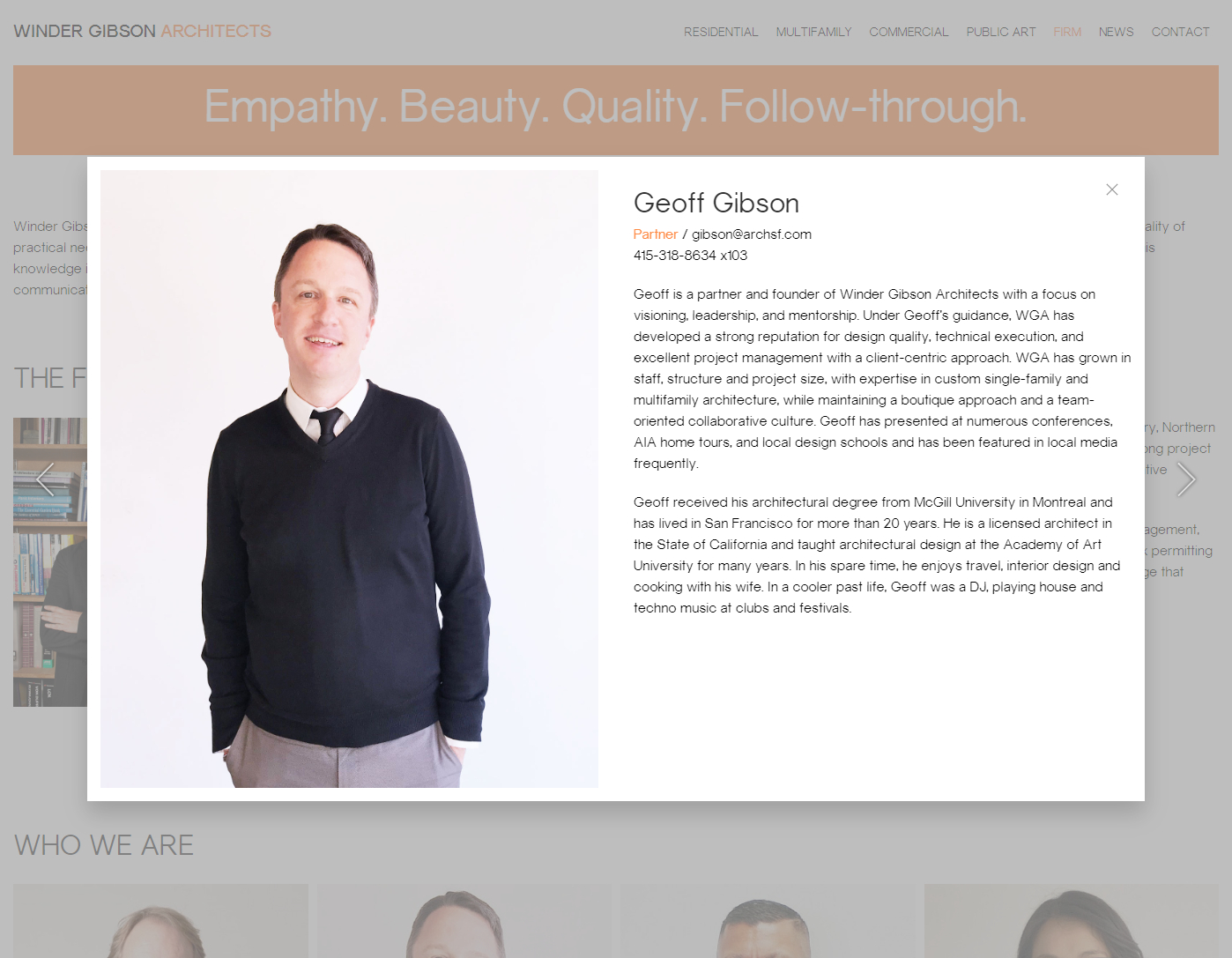 Winder Gibson Architects works on projects throughout the Bay Area, Wine Country, Northern California, Hawaii and beyond. In 2014, I developed their new corporate website.